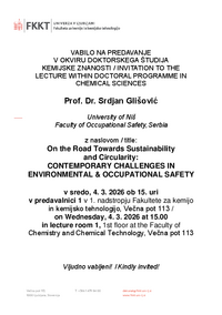 VABILO NA PREDAVANJE V OKVIRU DOKTORSKEGA ŠTUDIJA KEMIJSKE ZNANOSTI / INVITATION TO THE LECTURE WITHIN DOCTORAL PROGRAMME IN CHEMICAL SCIENCES Prof. Dr. Srdjan Glišović University of Niš Faculty of…